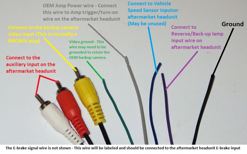 -Connect the purple wire to the back-up lamp input wire on the new headunit. This is the wire that triggers the backup camera when your car is shifted into reverse. There is no need to connect the headunit wire to the backup lamp. This harness provides that connection.